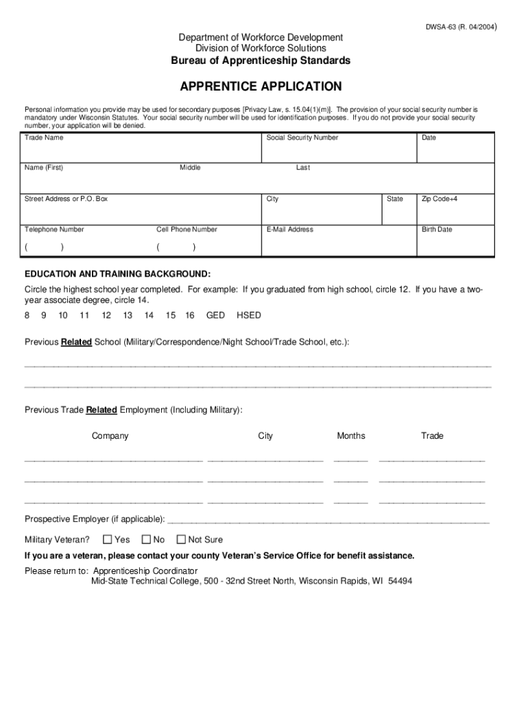 DWSA63 (R. 04/2004)Department of Workforce Development