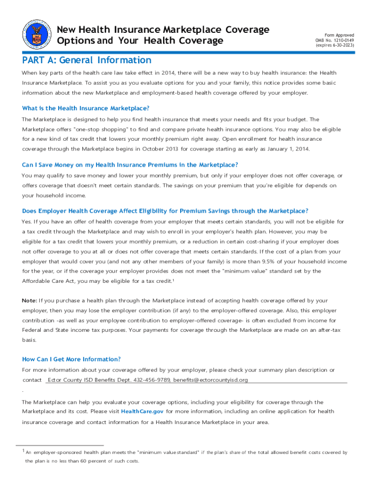 Get the free New Health Insurance Marketplace Coverage ... - Ector County ISD