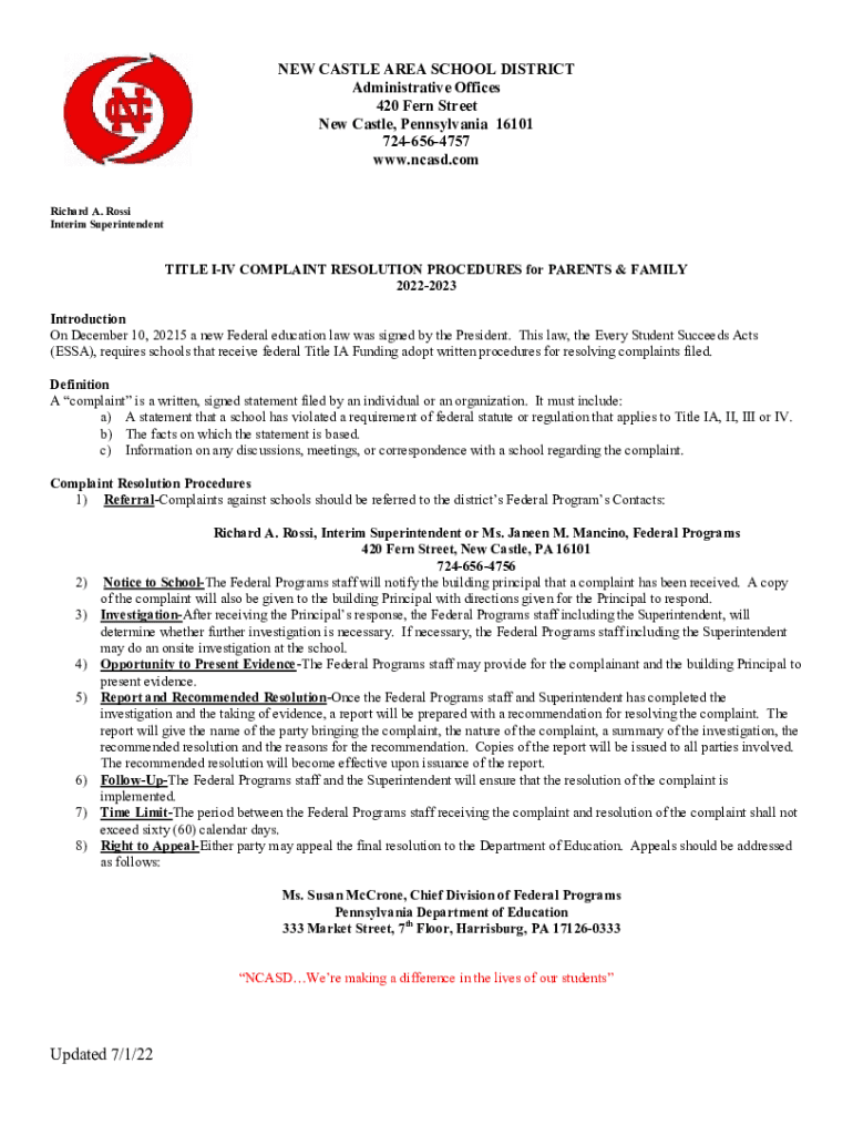 Interim SuperintendentTITLE IIT COMPLAINT RESOLUTION