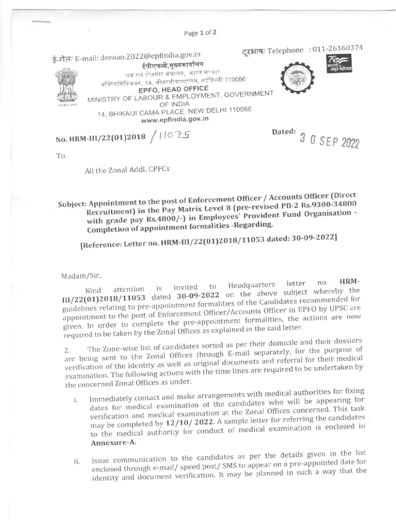 Page 1 of 2AnnexureA No.___Dated:To, Chief Medical Officer/Civil Surgeon, ___Government Hospital, ___. Subject: Medical examination of candidates for appointment as Enforcement Officer/Account Officer