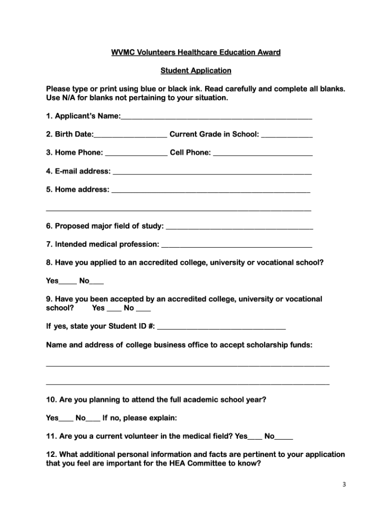 WILLAMETTE VALLEY MEDICAL CENTER VOLUNTEERS HEALTHCARE EDUCATION AWARD INFORMATION 1. All completed applications will be screened by all Healthcare Education Committee (HE) members and a list will