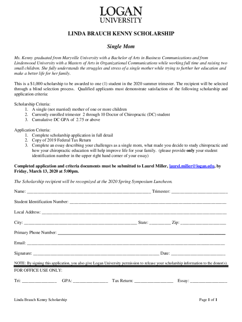 Get the free LINDA BRAUCH KENNY SCHOLARSHIP Single Mom