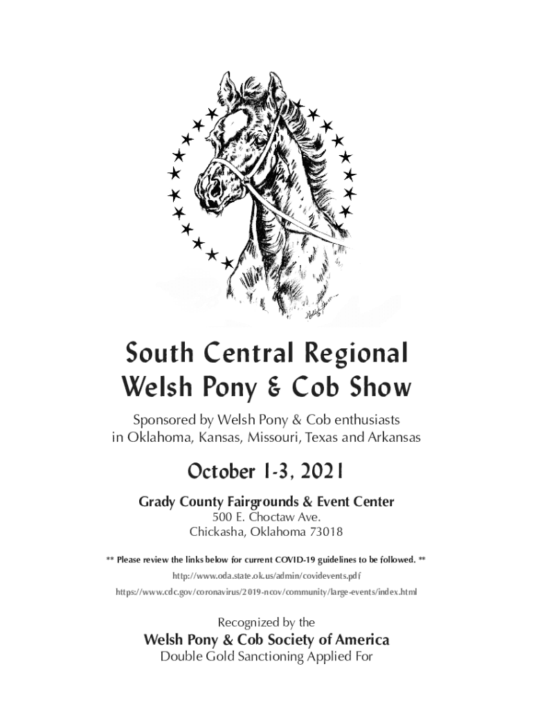 South Central Regional Welsh Pony & Cob Show Sponsored by Welsh Pony & Cob enthusiasts in Oklahoma, Kansas, Missouri, Texas and Arkansas October 13, 2021, Grady County Fairgrounds & Event Center 500