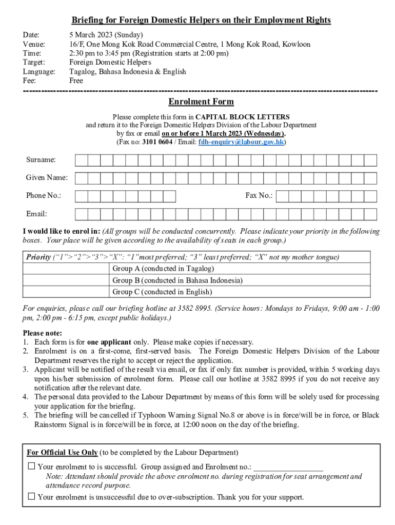 Get the free Briefing for Foreign Domestic Helpers on their Employment ...