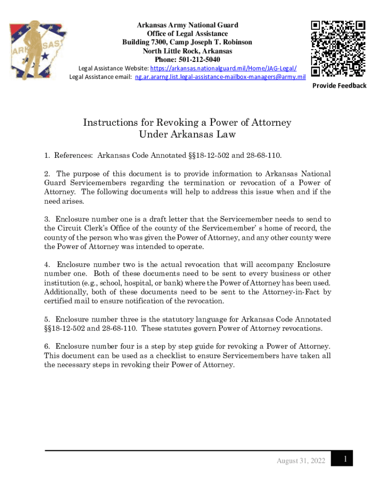 Arkansas Army National Guard Office of Legal Assistance Building 7300, Camp Joseph T. Robinson North Little Rock, Arkansas Phone: 5012125040 Legal Assistance Website: https://arkansas.nationalguard.mil/Home/JAGLegal/