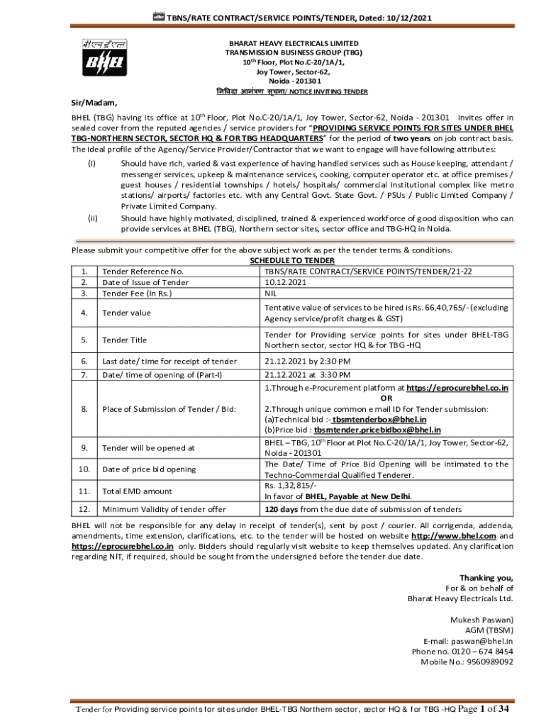 TONS/RECONTACT/SERVICEPOINTS/TENDER, Dated:10/12/2021