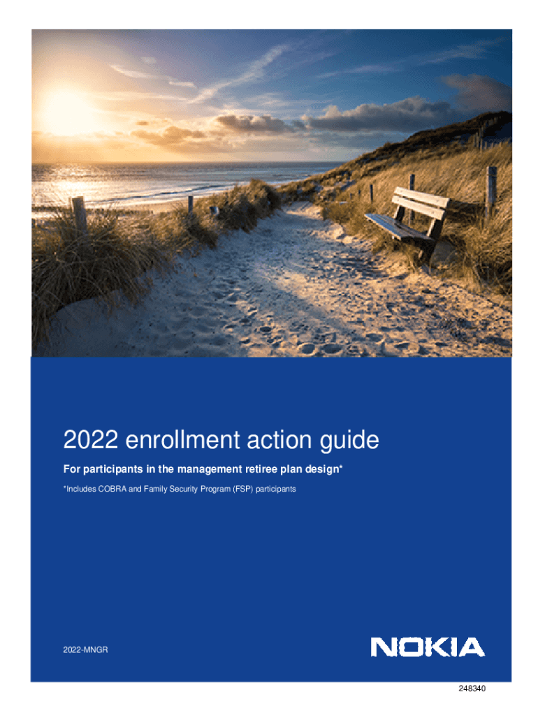 2022 enrollment action guide For participants in the management retiree plan design* *Includes COBRA and Family Security Program (FSP) participants2022MNGR2483402022 annual open enrollment period
