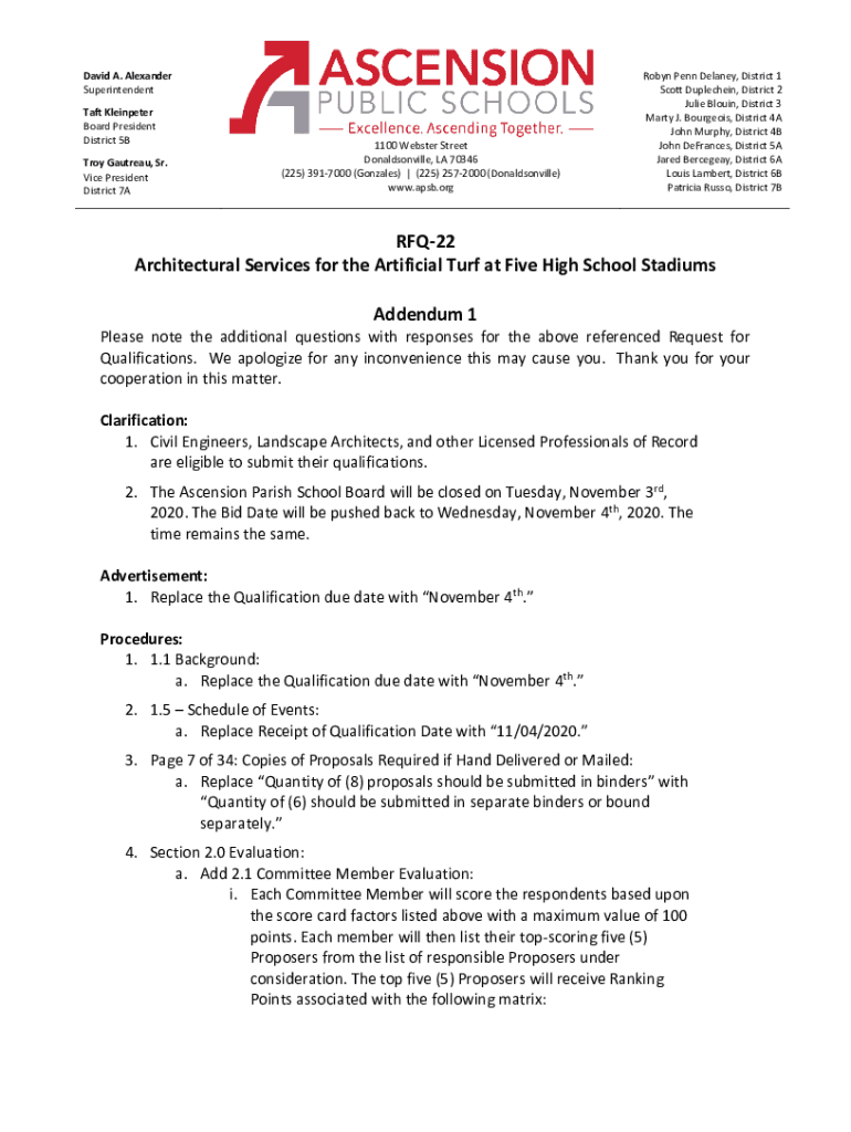 Get the free Architectural Services for the Artificial Turf at Five High School Stadiums