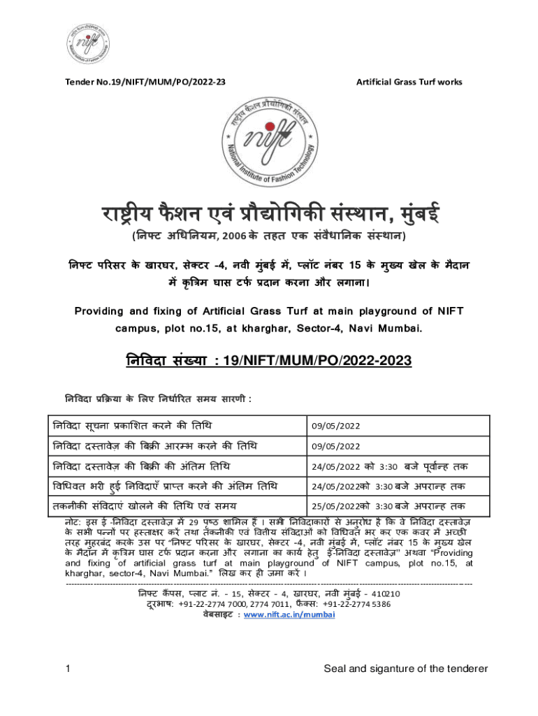 Tender No.19/NIFT/MUM/PO/202223Artificial Grass Turf works, (, 2006), 4, 15