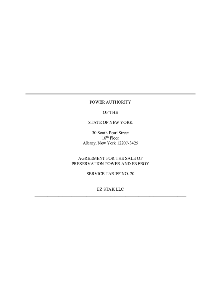 POWER AUTHORITY OF THE STATE OF NEW YORK 30 South Pearl Street 10th Floor Albany, New York 122073425 AGREEMENT FOR THE SALE OF PRESERVATION POWER AND ENERGY SERVICE TARIFF NO. 20 EZ STAR LLC ___The