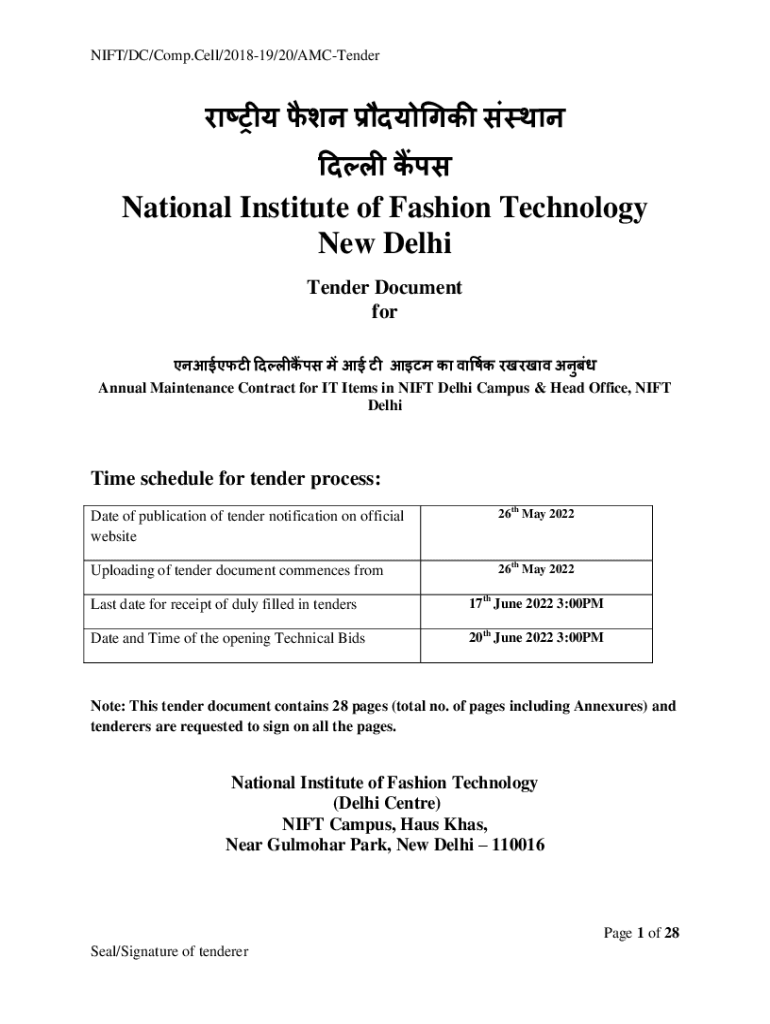 GIFT/DC/Comp.Cell/201819/20/AMCTender National Institute of Fashion Technology New Delhi Tender Document for Annual Maintenance Contract for IT Items in GIFT Delhi Campus & Head Office, GIFT Deloitte.