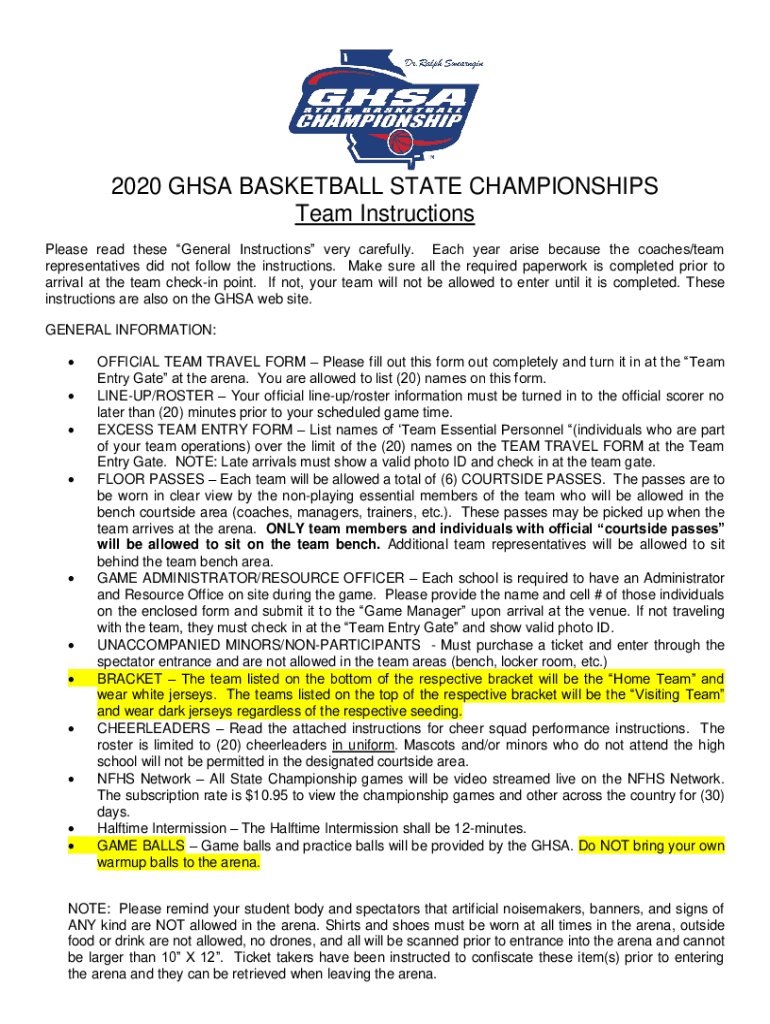 2020 HSA BASKETBALL STATE CHAMPIONSHIPS Team Instructions Please read these General Instructions very carefully. Each year arise because the coaches/team representatives did not follow the instructions.