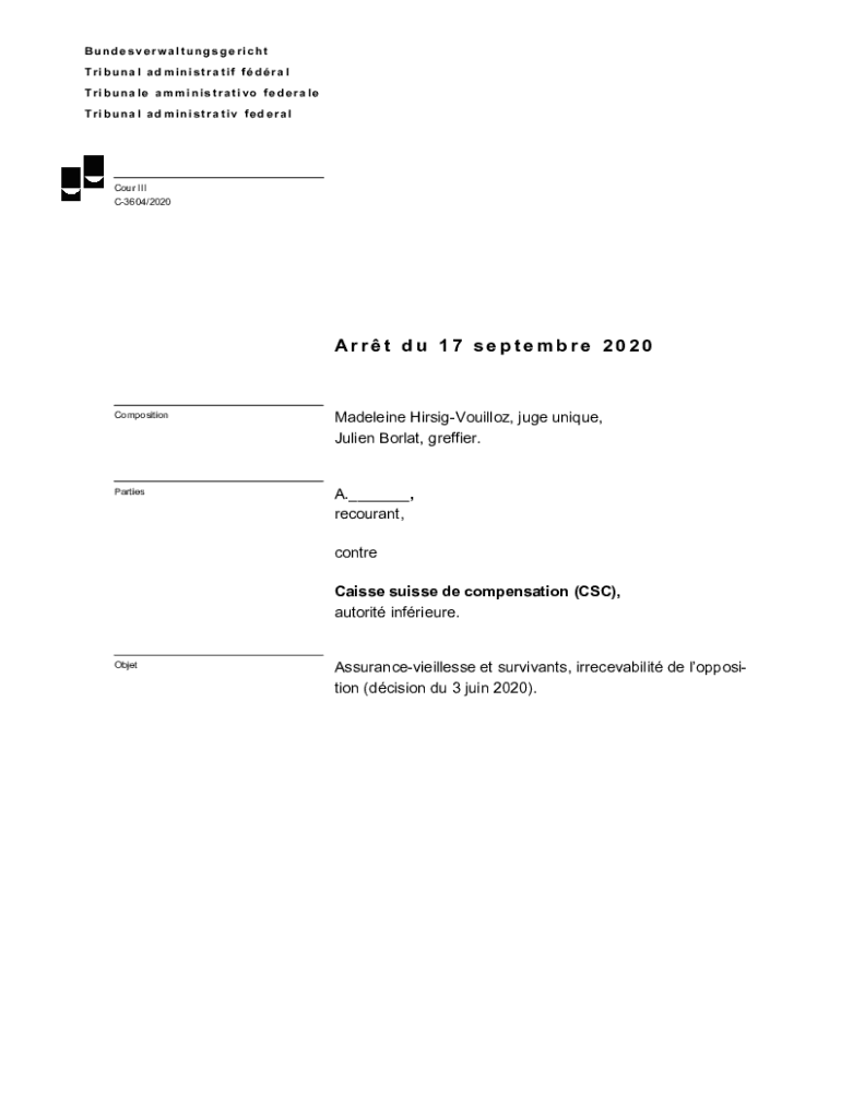 Bundesverwaltungsgericht Tribunal administration feral Tribunal administrative federal Tribunal administrative federalCour III C3604/2020Arrt Du 17 September 2020CompositionMadeleine HirsigVouilloz,