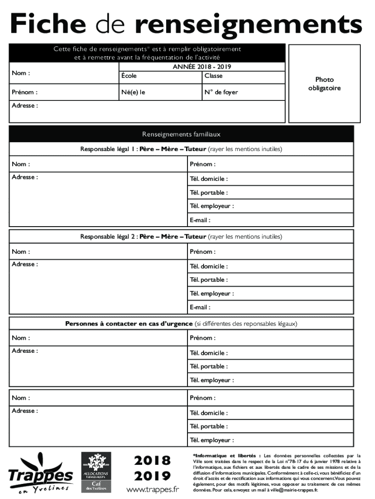 La fiche de renseignements doit être remplie en fournissant avec précision toutes les informations demandées.