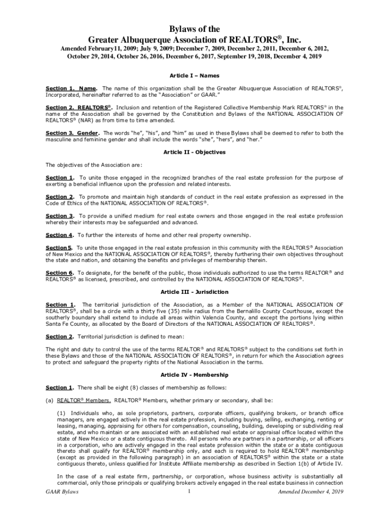 Get the free Bylaws of the Greater Albuquerque Association of REALTORS ...