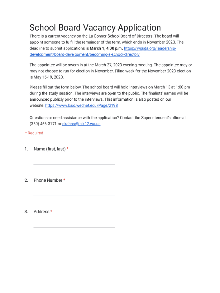 Get the free School Board Vacancy Application - Google Forms