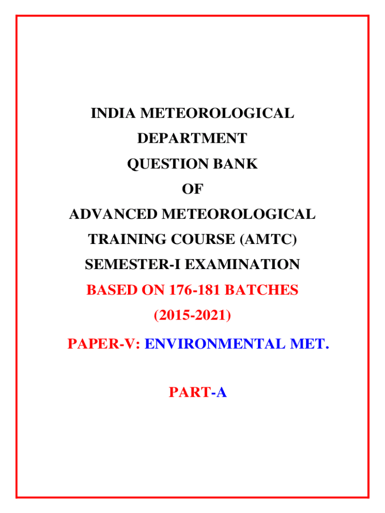 INDIA METEOROLOGICAL DEPARTMENT QUESTION BANK OF ADVANCED METEOROLOGICAL TRAINING COURSE (ATC) SEMESTER EXAMINATION BASED ON 176181 BATCHES (20152021) PAPER: ENVIRONMENTAL MET. Paranoia Meteorological