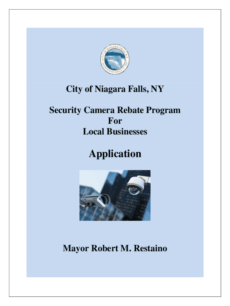 City of Niagara Falls, NY Security Camera Rebate Program For Local BusinessesApplicationMayor Robert M. RestainoApplying for Security Camera Rebate Program for Local Businesses Security Camera Description: