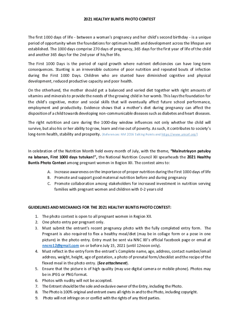 2021 HEALTHY BUNTS PHOTO Contest first 1000 days of life between a woman pregnancy and her children second birthday is a unique period of opportunity when the foundations for optimum health and development