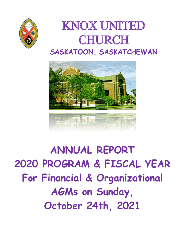 KNOX UNITED CHURCH SASKATOON, SASKATCHEWANANNUAL REPORT 2020 PROGRAM & FISCAL YEAR For Financial & Organizational AGM's on Sunday, October 24th, 2021Knox United Church Saskatoon 2020 Annual Report