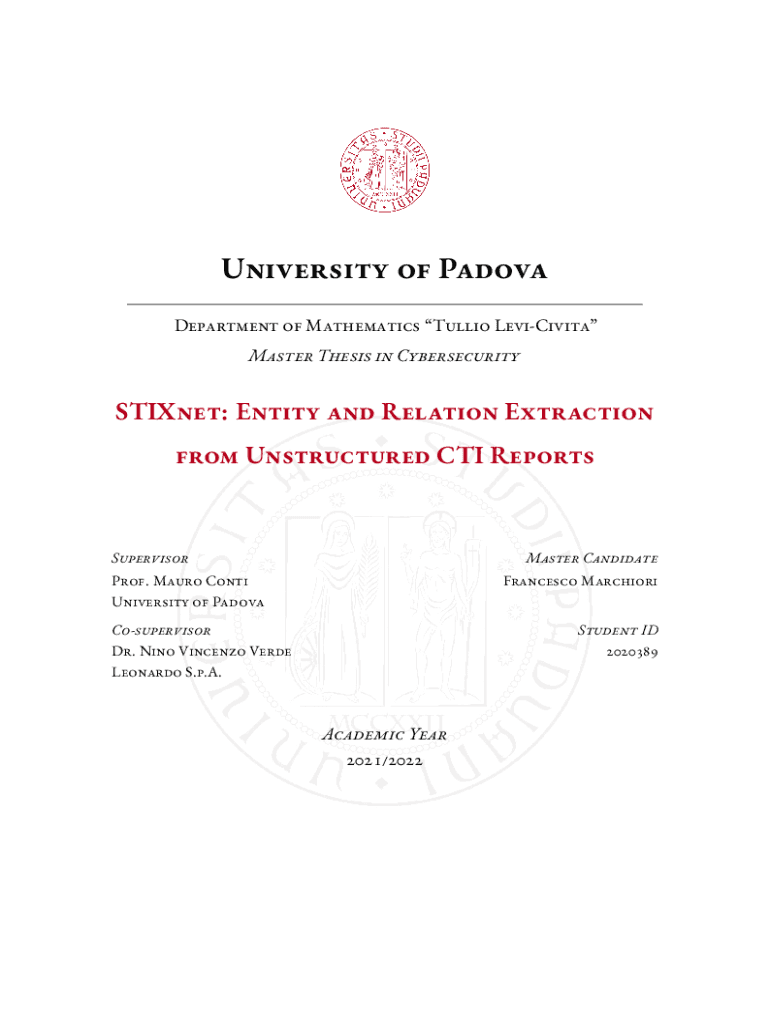 University of Pad ova Department of Mathematics Julio LeviCivita Master Thesis in CybersecuritySTIXnet: Entity and Relation Extraction from Unstructured CTI ReportsSupervisorMaster Candidate Prof.