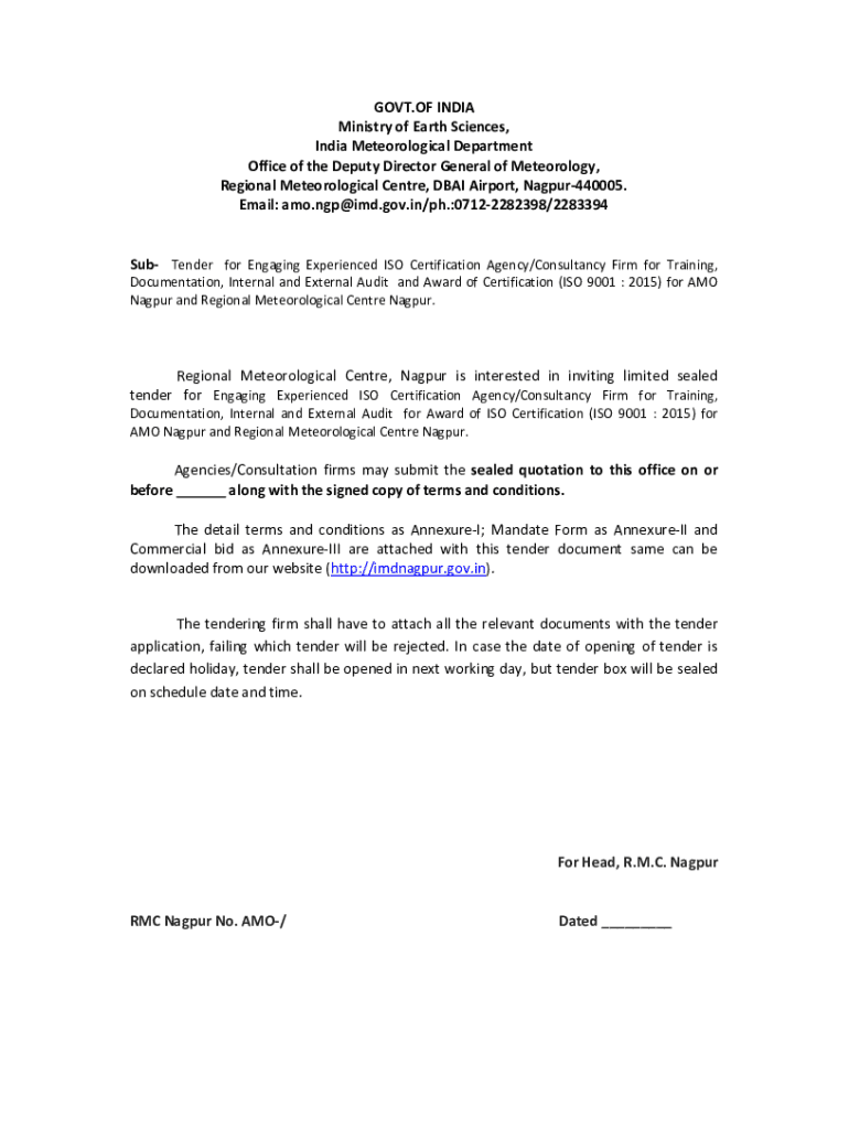 Get the free Quotation for Engaging Experienced ISO Certification Agency.docx - imdnagpur gov