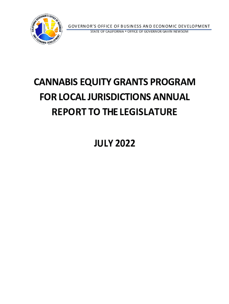 GOVERNORS OFFICE OF BUSINESS AND ECONOMIC DEVELOPMENT STATE OF CALIFORNIA OFFICE OF GOVERNOR GAVIN NEWSOMCANNABIS EQUITY GRANTS PROGRAM FOR LOCAL JURISDICTIONS ANNUAL REPORT TO THE LEGISLATURE JULY