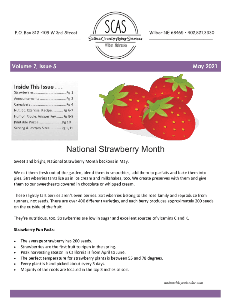 P.O. Box 812 109 W 3rd Street ___Wilbur NE 68465 402.821.3330___Volume 7, Issue 5May 2021Inside This Issue. . . Strawberries ................................. Pg 1 Announcements ...........................