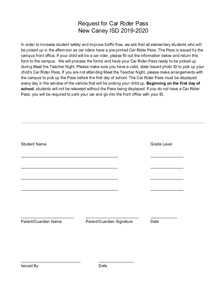 Obtener el gratis NCISD Request for Car Rider Pass