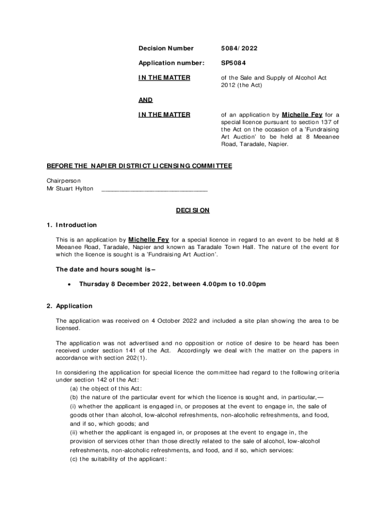 Get the free District Licensing Committee DecisionsNapier City Council