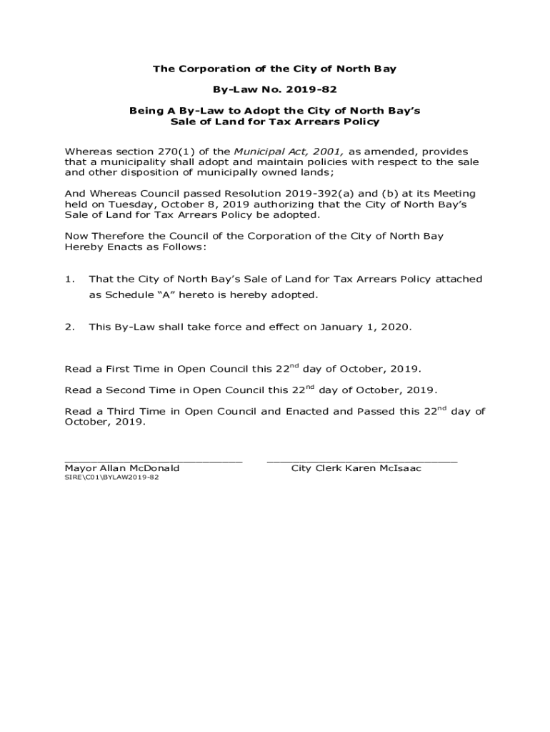 Get the free by-law-no.2019-82-tax-arrear-policy.pdf - City of North Bay