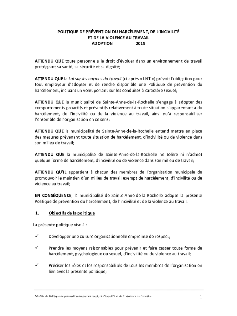 POLITICAL DE PREVENTION DU HARASSMENT, DE INCIVILITY