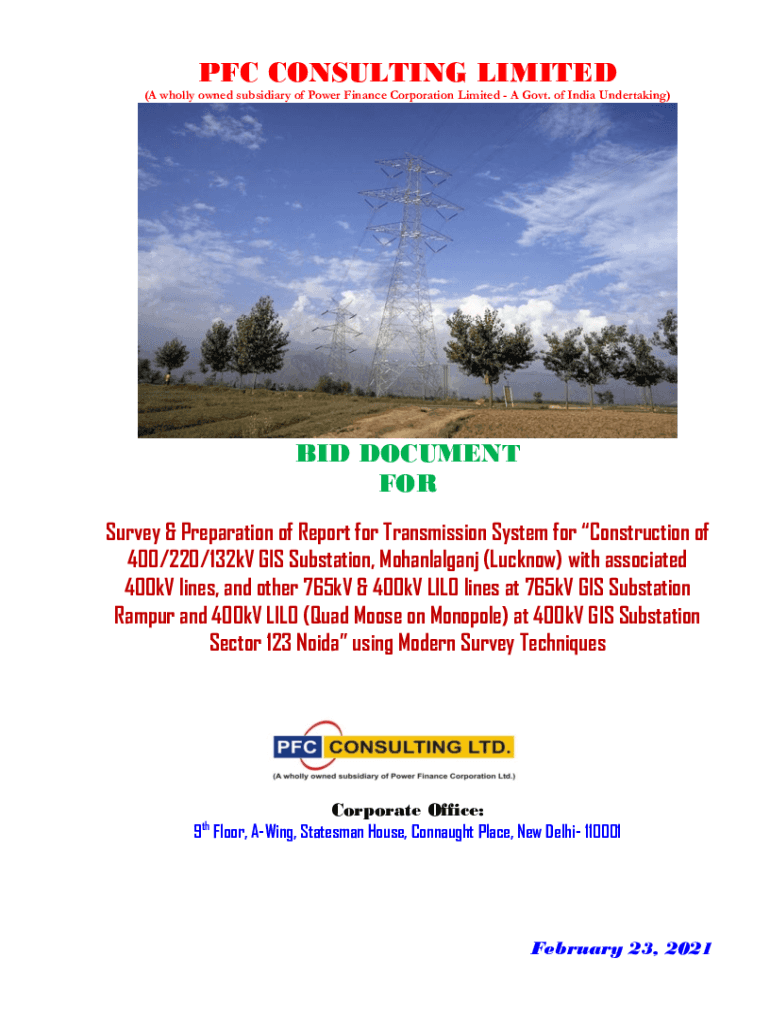 PFC CONSULTING LIMITED (A wholly owned subsidiary of Power Finance Corporation Limited A Govt. of India Undertaking)BID DOCUMENT FOR Survey & Preparation of Report for Transmission System for Construction