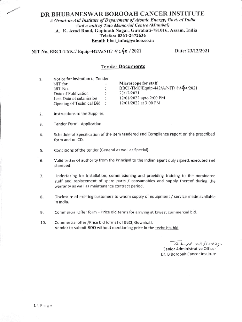 Get the free NIT for supply, installation and commissioning of Microscope ...