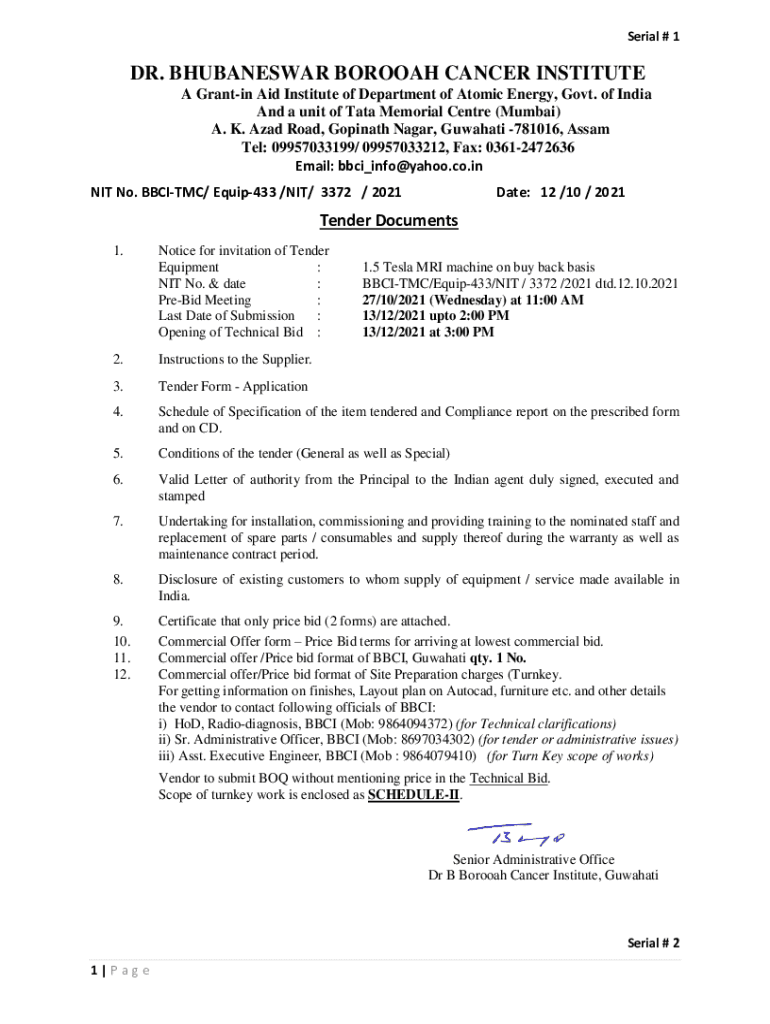 Get the free NIT for supply, installation & commissioning of 1.5 Tesla MRI ...