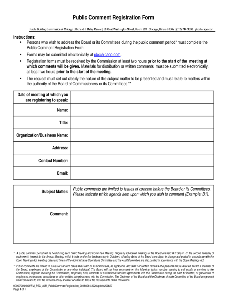 Public Comment Registration Form is not the form you're looking for?Search for another form here.