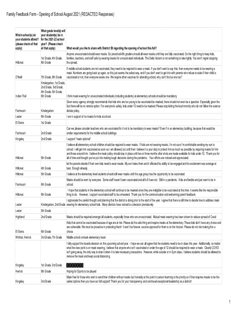 Family Feedback Form Opening of School August 2021 (REDACTED Responses)Which school(s) do your students attend? (please check all that apply)What grade level(s) will your student(s) be in for the