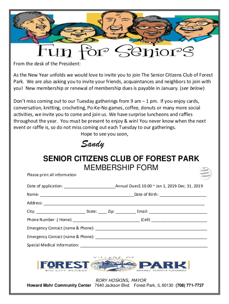 From the desk of the President: As the New Year unfolds we would love to invite you to join The Senior Citizens Club of Forest Park. We are also asking you to invite your friends, acquaintances and