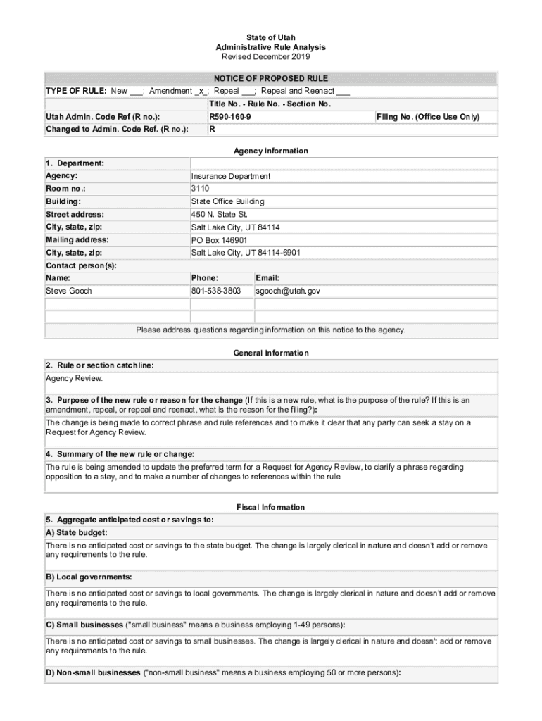 State of Utah Administrative Rule Analysis Revised December 2019 NOTICE OF PROPOSED RULE TYPE OF RULE: New ___; Amendment _x_; Repeal ___; Repeal and Reenact ___ Title No. Rule No. Section No. Utah