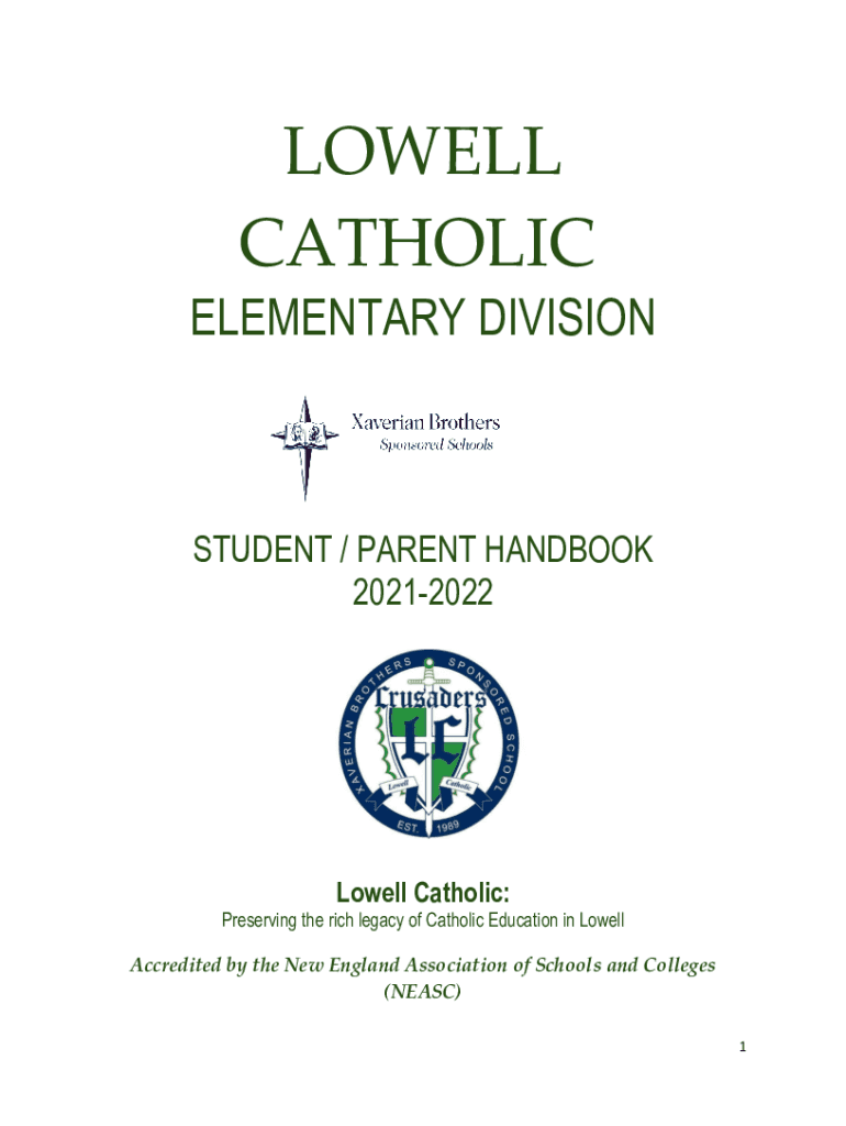 LOWELL CATHOLIC ELEMENTARY DIVISIONSTUDENT / PARENT HANDBOOK 20212022Lowell Catholic:Preserving the rich legacy of Catholic Education in Lowell Accredited by the New England Association of Schools