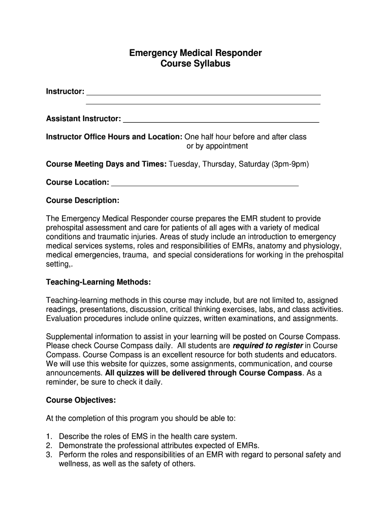 Get the free Emergency Medical Responder Course Syllabus - MedExpress ...