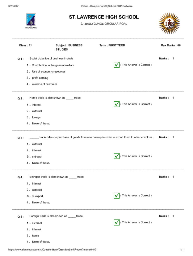 Class : 11Q1:Subject : BUSINESS