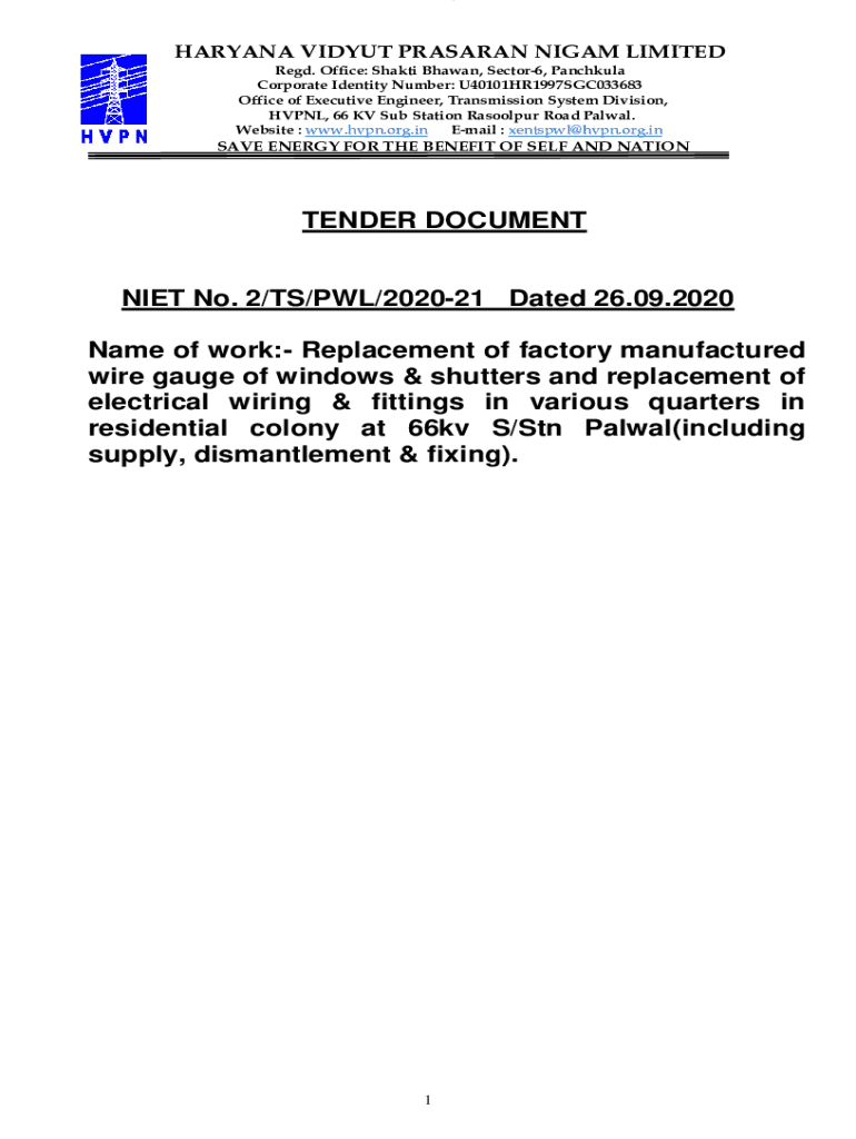 1HARYANA VILYUI PRUSSIAN NI GAM LIMITED Red. Office: Shakti Shawn, Sector6, Patchouli Corporate Identity Number: U40101HR1997SGC033683 Office of Executive Engineer, Transmission System Division, VPN,