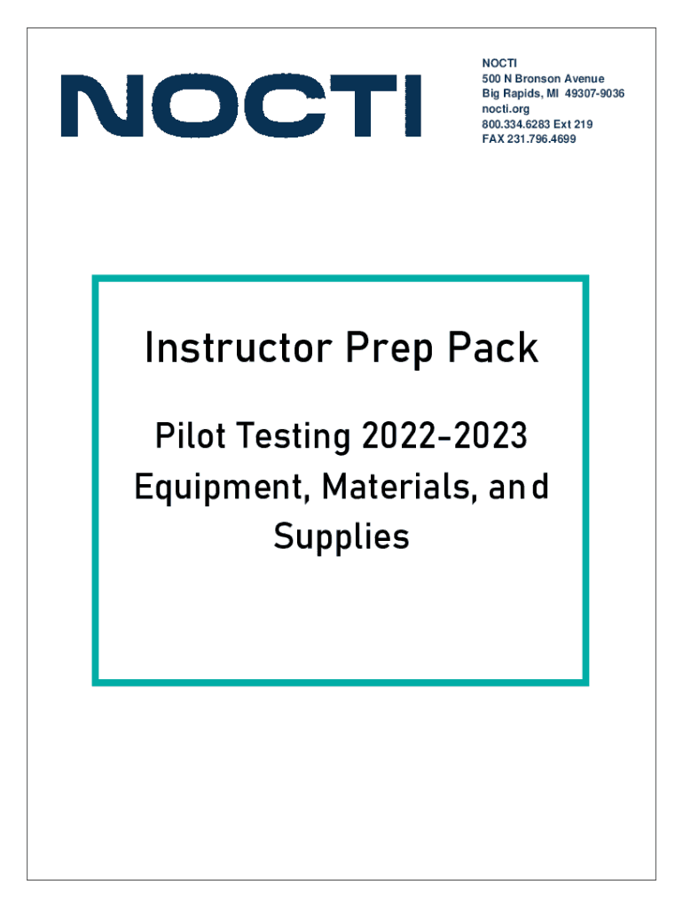 NO CTI 500 N Bronson Avenue Big Rapids, MI 493079036 not.org 800.334.6283 Ext 219 FAX 231.796.4699Instructor Prep Pack Pilot Testing 20222023 Equipment, Materials, and SuppliesTable of Contents (Click