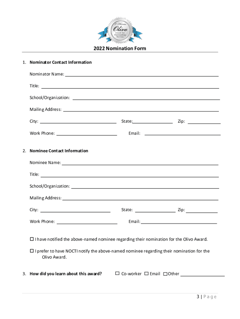 2022 Nomination Packet2022 Nomination Information The purpose of the C. Thomas Olive Outstanding Service Award is to recognize test coordinators, administrators, state/national policymakers, or CTE