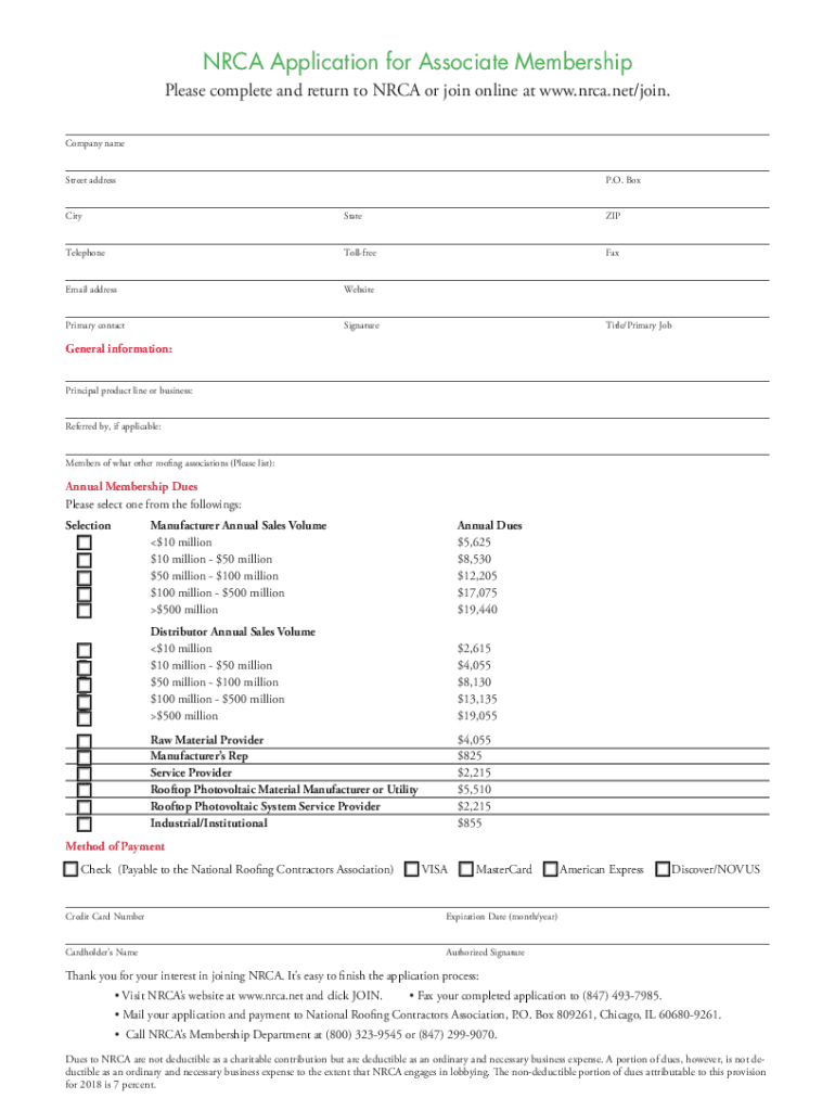 NACA Application for Associate Membership Please complete and return to NACA or join online at www.nrca.net/join. Company name Street address. O. BoxCityStateZIPTelephoneTollfreeFaxEmail addressWebsitePrimary