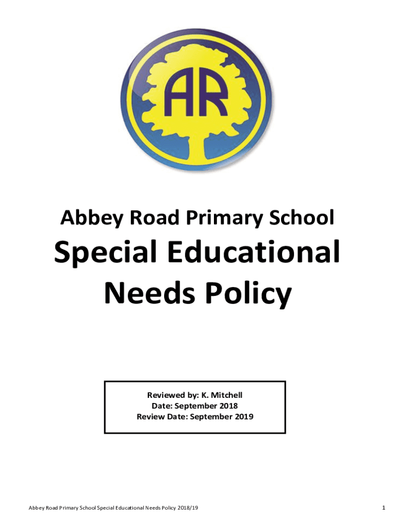 Abbey Road Primary SchoolSpecial Educational Needs Policy Reviewed by: K. Mitchell Date: September 2018 Review Date: September 2019Abbey Road Primary School Special Educational Needs Policy 2018/191Contents: