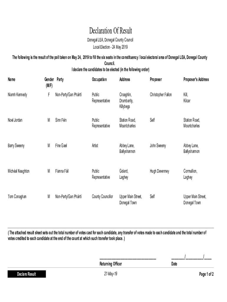The following is the result of the poll taken on May 24, 2019, to fill the six seats in the constituency / local