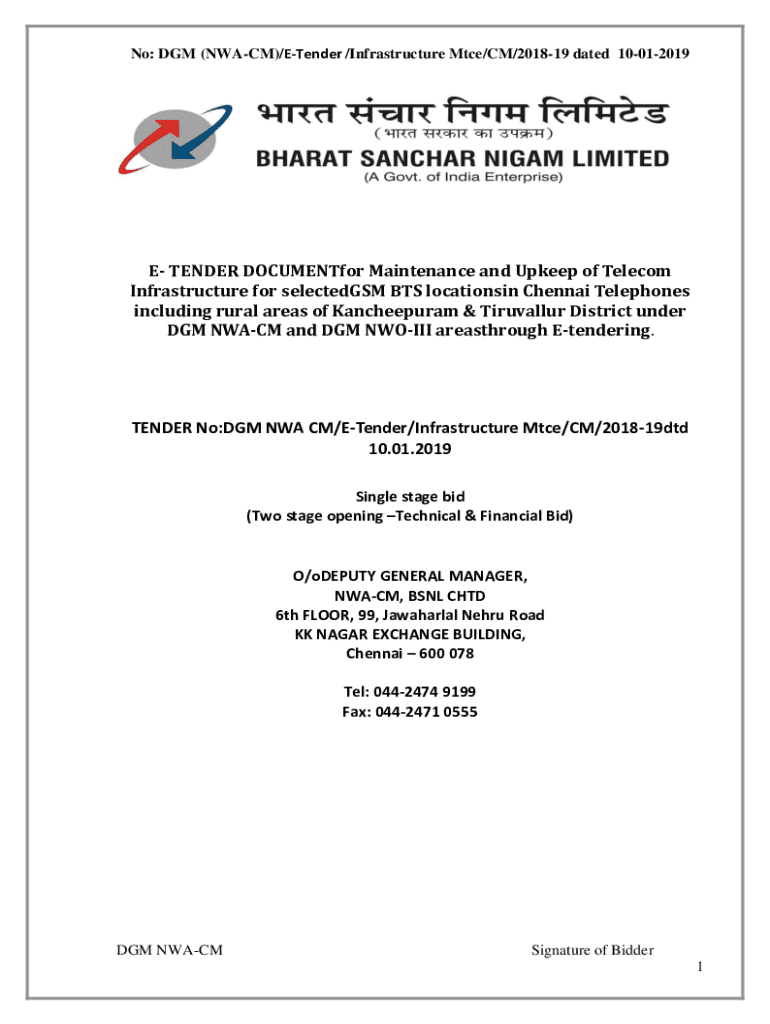 No: DAM (NW ACM)/Tender /Infrastructure Mice/CM/201819 dated 10012019E TENDER DOCUMENT for Maintenance and Upkeep of Telecom