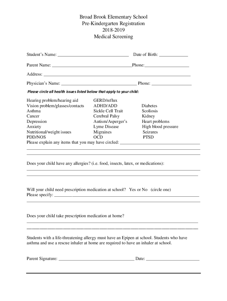 Medical ScreeningStudents Name: ___Date of Birth: ___Parent Name: ___Phone:___